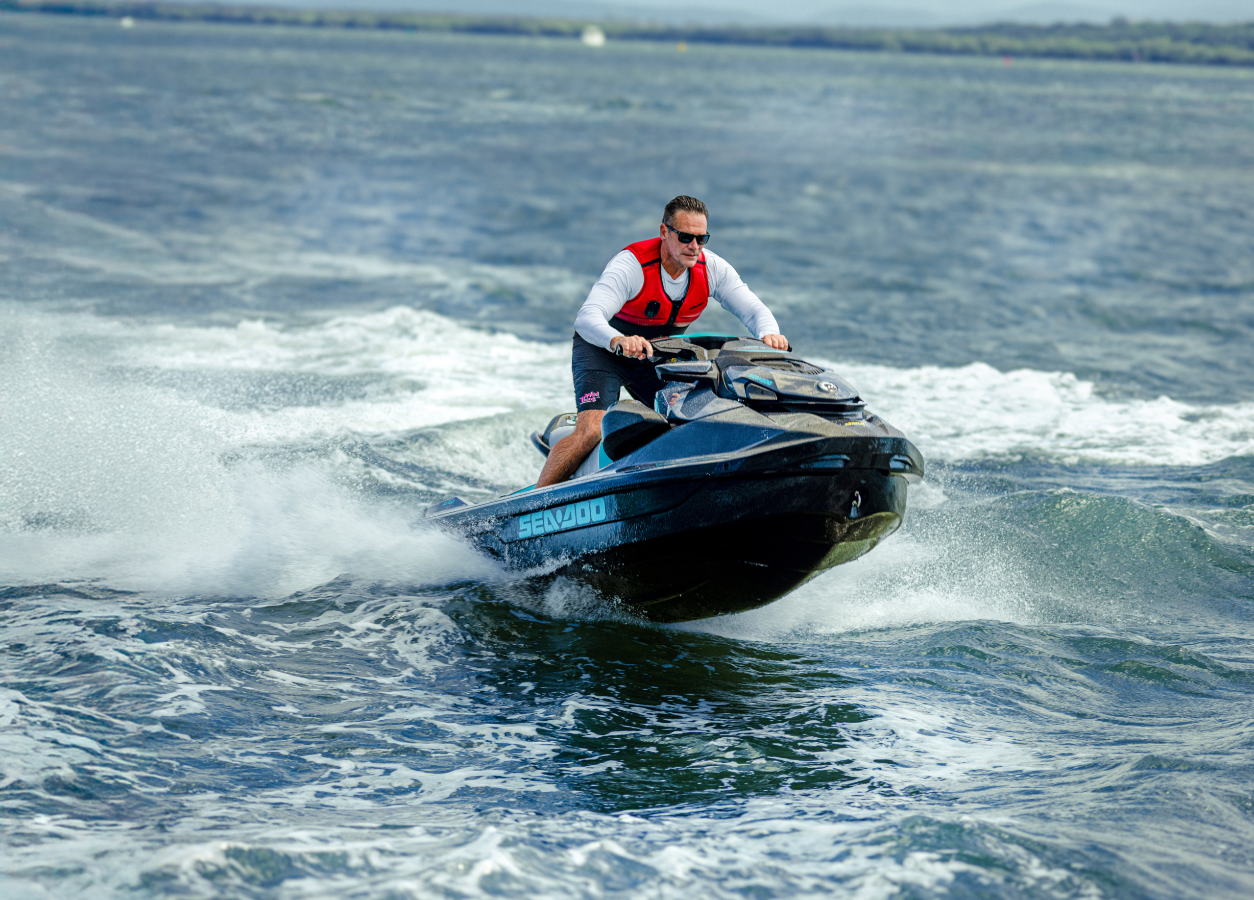 The Sea-Doo GTR 230 impressed straight away, with its broad power range and predictable handling in the choppy conditions off Couran Cove. It’s stable, and having not ridden for a while, it was nice to slide back into it without instant arm pump. The Sea-Doo GTR 230 is more about longer days in the saddle for cruising and exploring, so the big 96l storage for all your beach gear and Bluetooth audio made the day a whole lot more fun, as did the comfortable ride. The Sea-Doo GTR 230 just does everything so easily and smoothly. If you want to jump off for a swim, it’s simple to pull yourself back out onto the swim platform, and there is plenty of grunt for tow sports with the family.