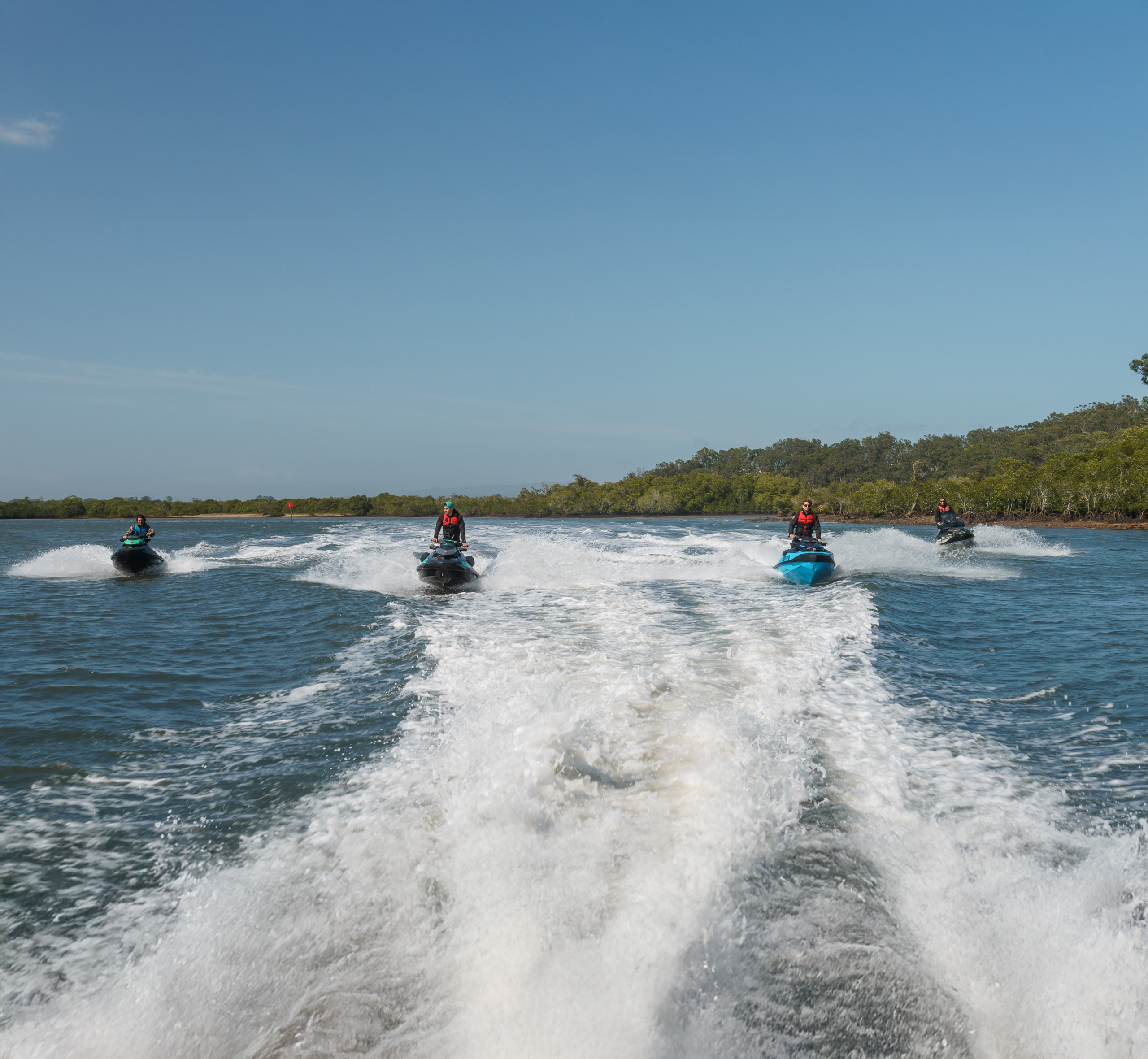 The 2026 Sea-Doo launch delivered an unforgettable day on the Gold Coast Broadwater, with Couran Cove on South Stradbroke Island the perfect backdrop. Pierce O’Brien, Sea-Doo Brand & Product Manager – APAC was there to greet us, along with the ever professional JSW Powersports team. From there, we were chauffeured across the water on a pontoon boat to our home base for the day – ‘Sea-Doo House’ – a luxury waterfront residence that was perfect for showcasing the next generation of personal watercraft (PWC).